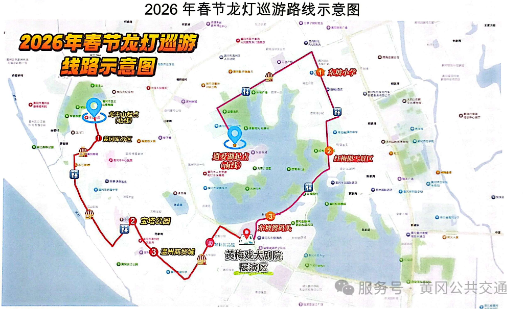 2026年2月21日(正月初五),黄冈市区将举行2026年春节龙灯巡游及民俗展演活动。届时,部分道路将实行临时交通管制,市区大部分公交线路的通行受影响,市公交公司拟对相关公交线路运营进行如下临时调整: