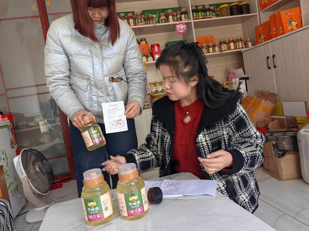 当日上午,前来购买蜂蜜的刘女士在挑选产品时,合作社工作人员主动向她介绍了新推行的合格证制度。在完成交易后,王小琴手写一张承诺达标合格证。合格证上明确标注了产品名称、数量、产地、生产者联系方式等。