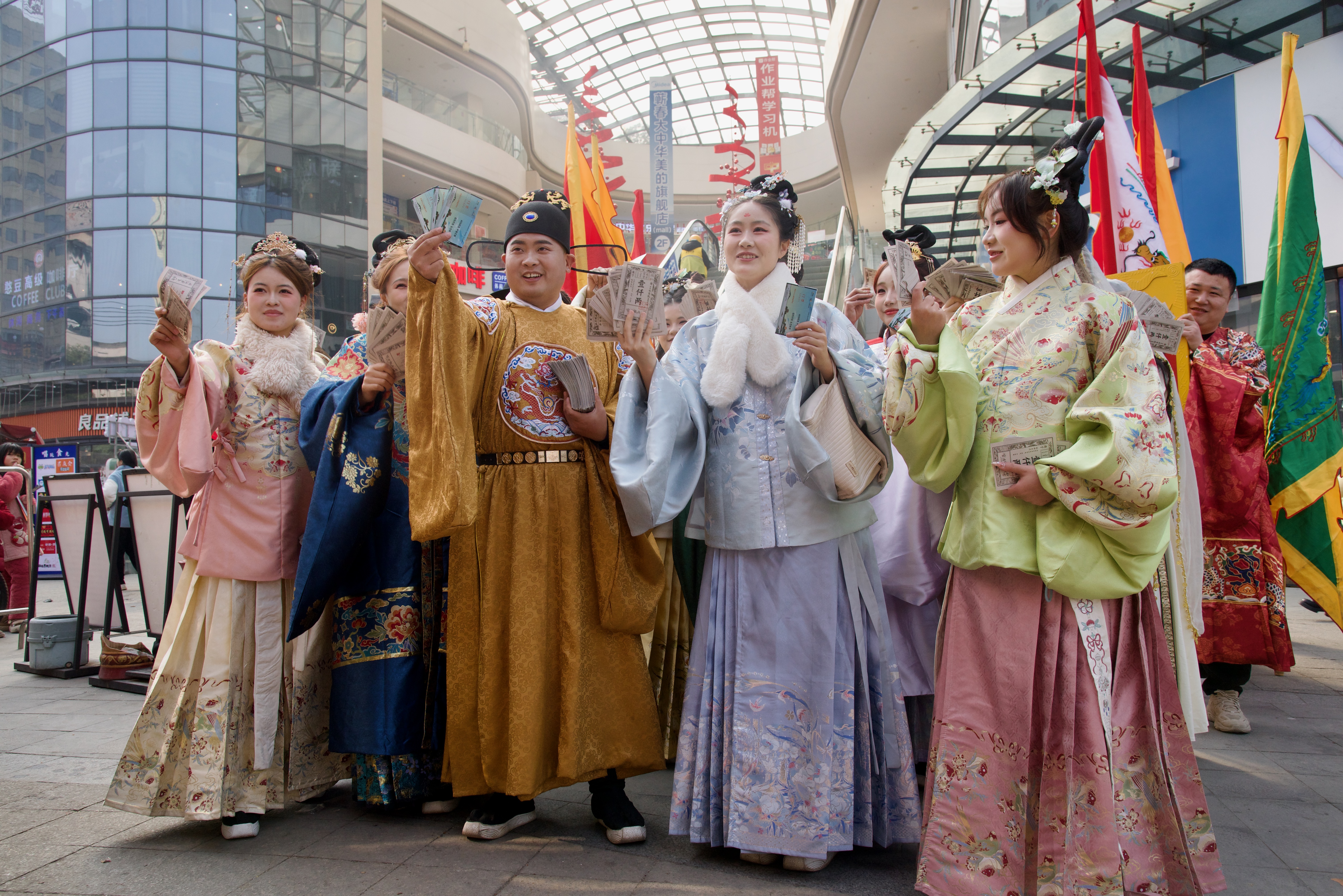 “这是穿越了吗?一下车就遇到‘古人’送福,太有意思了!”在深圳工作的蕲春人尹陈红接过制作精美的门票,又惊又喜。同样的温暖场景,也出现在大中华广场的年货集市、蕲州古城的雄武门下、李时珍纪念馆的四贤牌坊前。这支由李时珍文化旅游区演职人员组成的巡游队伍,在小年这天走上街头,用一场充满诚意的“街头偶遇”,邀请家乡人共赴新春之约。