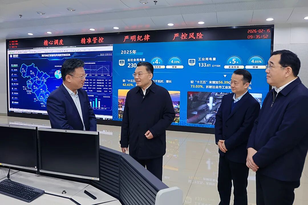 电力保障是城市运行和居民生活的基本需求。在国网黄冈电力调度控制中心,李军杰认真听取春节期间全市电网运行方式、负荷预测、应急抢修准备等工作汇报,通过大屏幕实时了解全市电网运行状态。他指出,电力供应是经济社会发展的关键支撑,事关民生冷暖、城市安全和高质量发展大局。要加强科学调度,优化运行方式,完善应急预案,确保春节期间电网安全稳定运行。要优先保障居民生活、公共服务、重点企业、关键部位的用电需求,助力全市“十五五”经济社会发展开好局、起好步。
