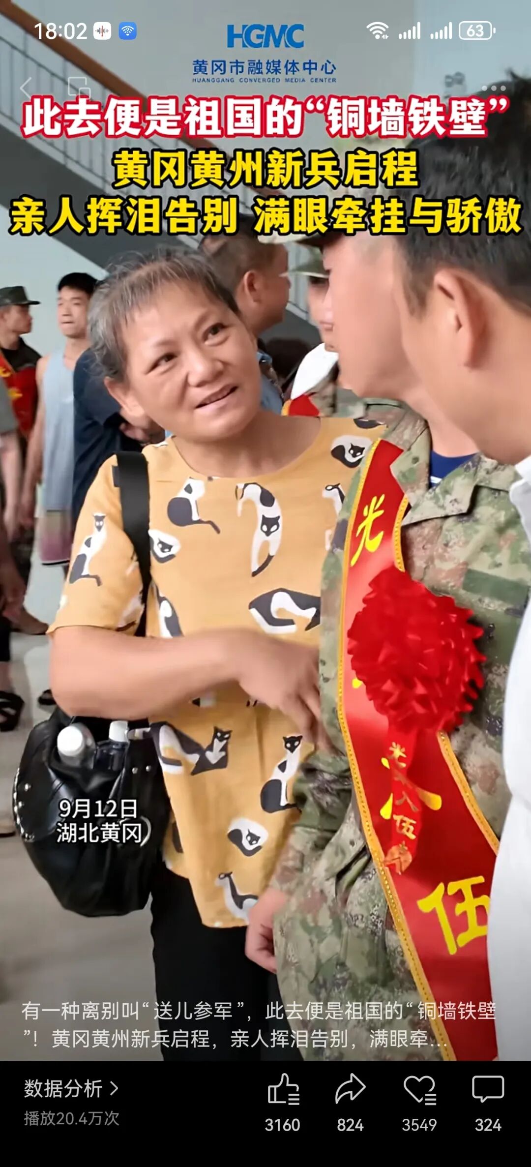 ▲黄冈黄州新兵启程,亲人挥泪告别,满眼牵挂与骄傲。