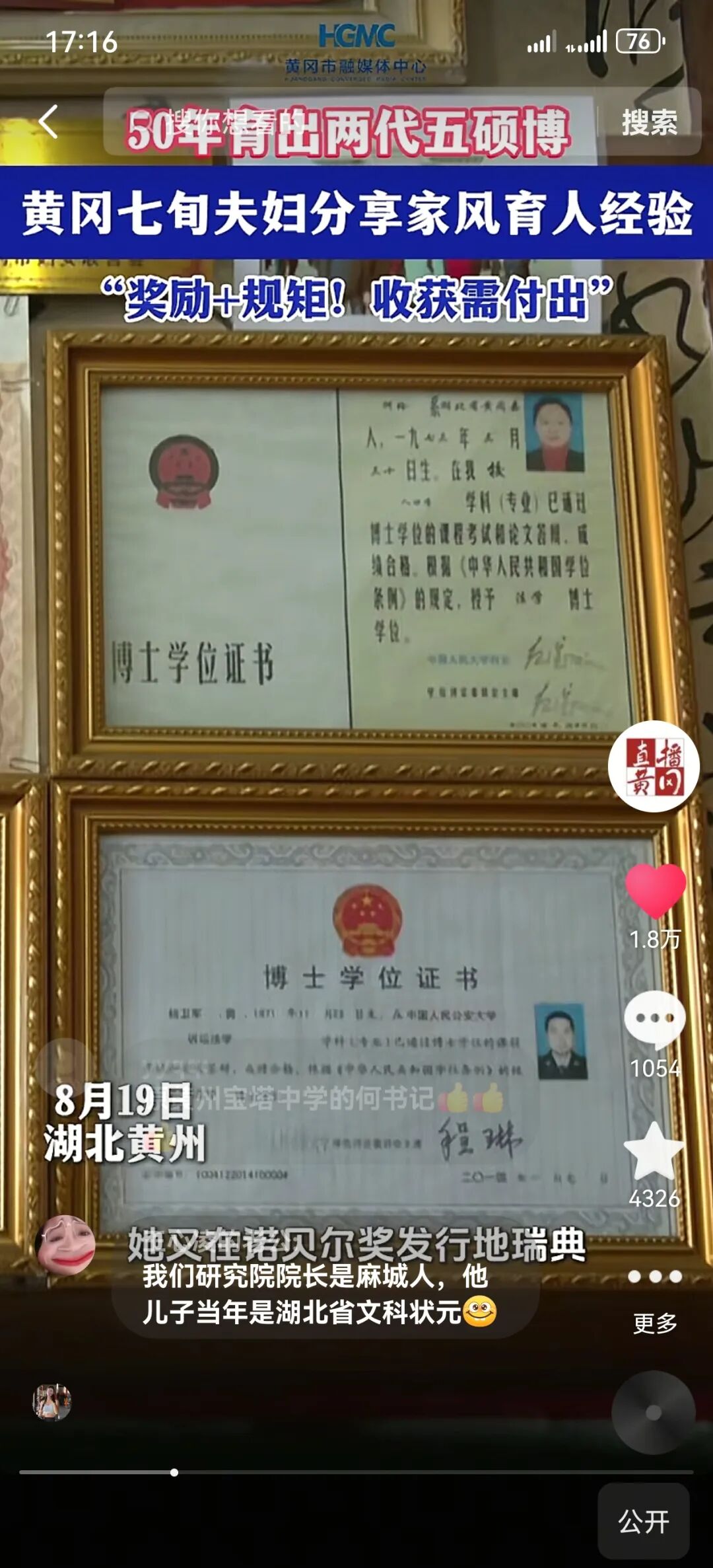 ▲从黄冈红安走出的自媒体网红@晓菲姐一家人寄语黄冈学子:人生的机会是留给努力的有心人。