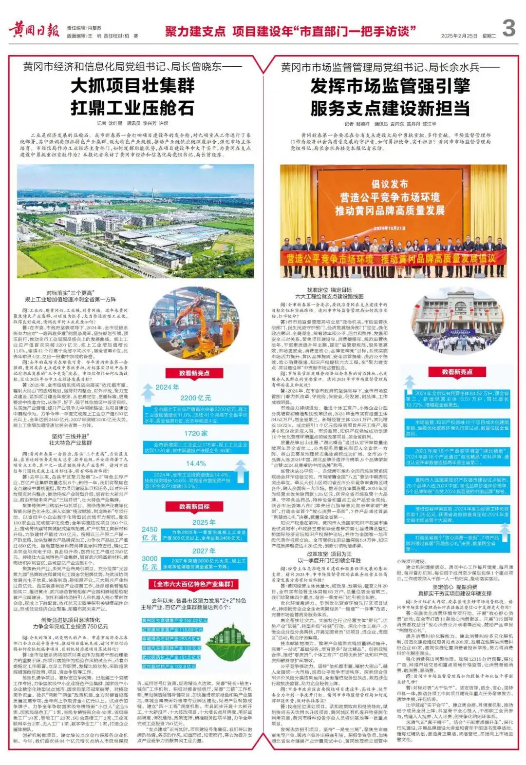 2025年2月8日,黄冈“新春第一会”的号角响彻全城,正式吹响了“项目建设年”的冲锋号。会议强调,要发挥比较优势,坚定实施“依托都市圈、辐射大别山”战略,对内整合、对外开放,系统承接都市圈交通物流、科创产业、公共服务赋能和文旅消费需求,向东、向北形成梯度辐射,带动大别山毗邻地区发展,进一步放大武汉都市圈的辐射力、带动力、影响力。一年来,全市新开工亿元项目700多个、总投资2513亿元,新签约亿元项目992个、同比增长60%;争取各类竞争性政策资金280亿元,新型政策性金融工具投放额度全省第二……一批打基础、利长远、补短板、调结构的大项目好项目努力将革命老区建设得更好,让老区人民过上更好生活,走出一条符合黄冈实际的新路子。