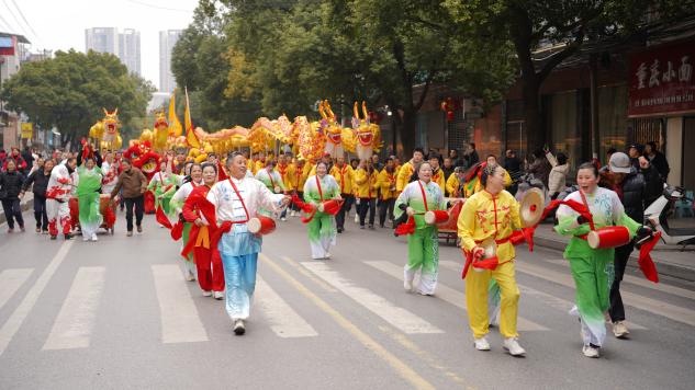 正月初三(2月19日)9:00-11:30,蕲春县2026年舞龙闹新春“体育过大年”活动在漕河城区盛大上演。来自漕河镇、横车镇、刘河镇、檀林镇的250名舞龙舞狮锣鼓队员集结上阵,龙舞翩跹、锣鼓震天,用最热闹的民俗盛宴承包群众的新年欢喜。
