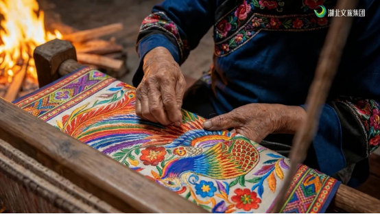 伴随织机底鼓,土家山寨里指尖流转的西兰卡普率先登场。