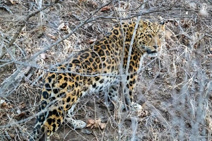 23日,一名吉林摄影师在位于东北虎豹国家公园腹地的吉林省珲春市镇安岭村附近公路邂逅一只野生东北豹。据他介绍,这只东北豹从公路窜至山林后驻足回望,和他对视了数秒。
