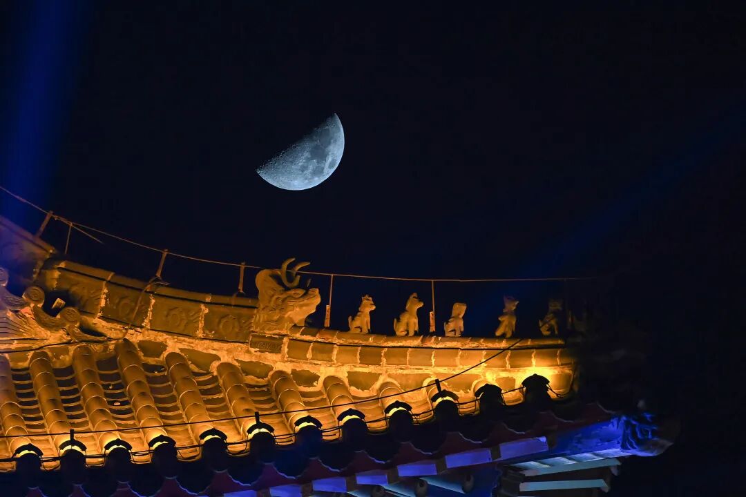 △2026年2月24日,山东青州,2026年度最大上弦月现身天宇。