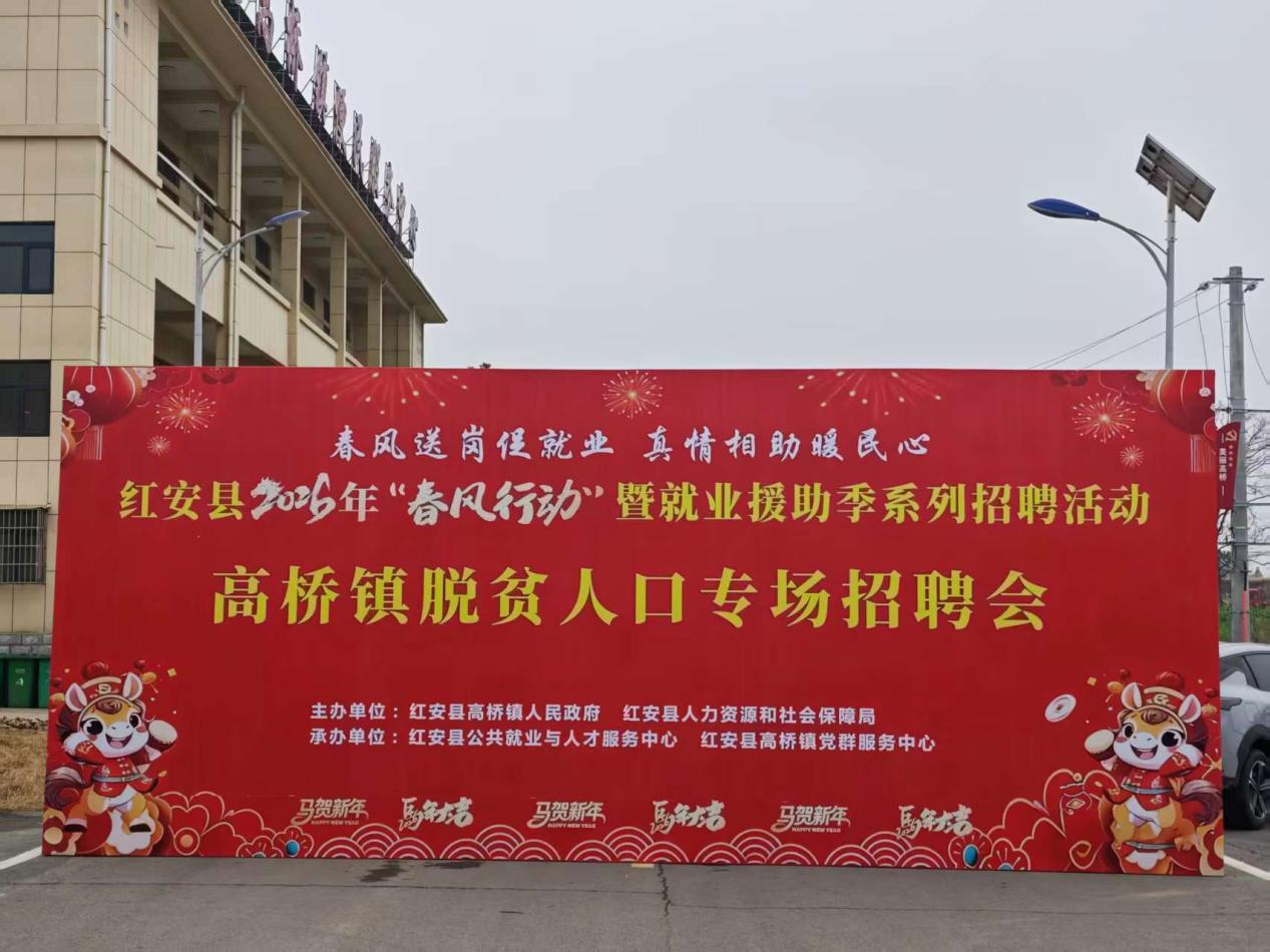 本报讯(通讯员罗成伟)2月27日上午,红安县2026年“春风行动”暨就业援助季高桥镇专场招聘会在镇便民服务中心门口火热开展。本次活动由高桥镇人民政府、县人社局联合主办,县公共就业与人才服务中心、高桥镇党群服务中心共同承办,抢抓节后用工“黄金期”,搭建精准对接平台,真正把就业服务送到群众“家门口”。