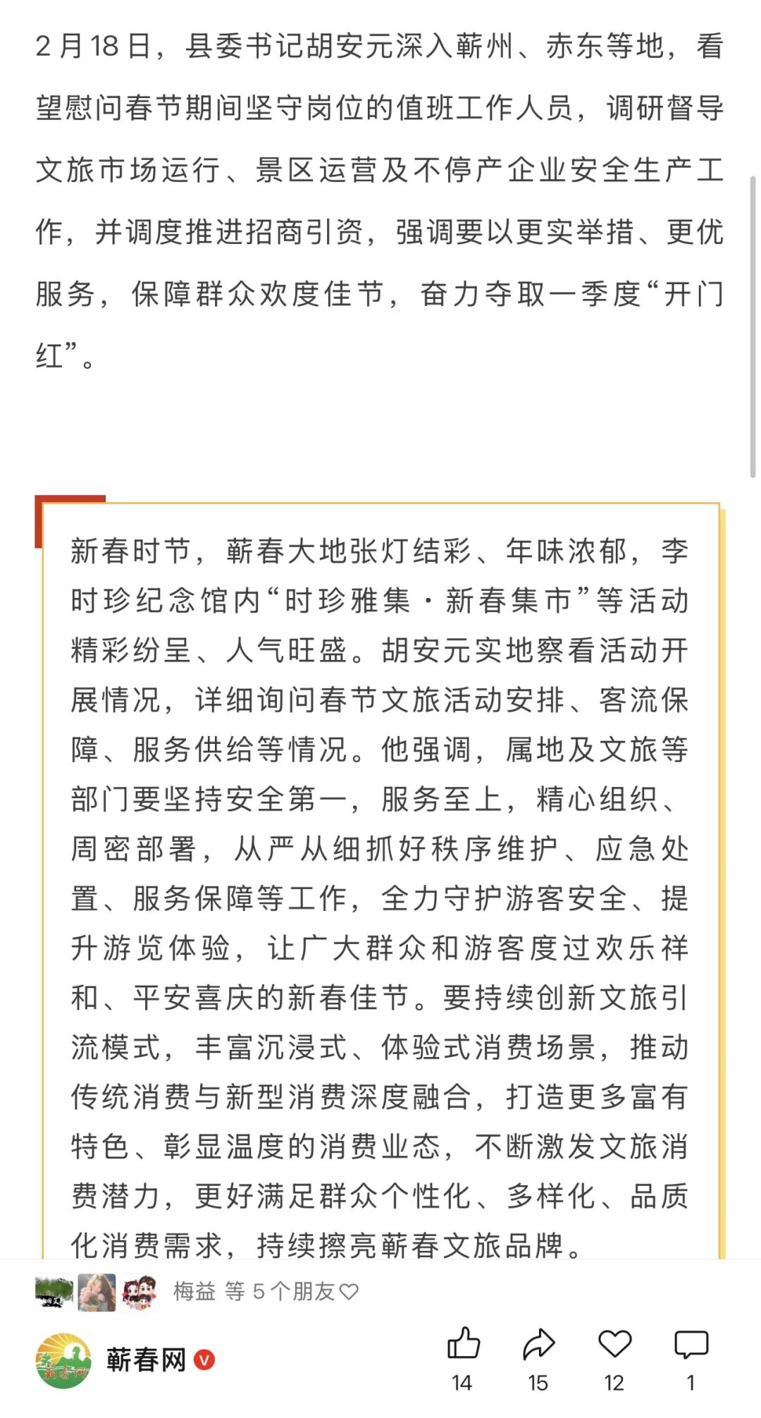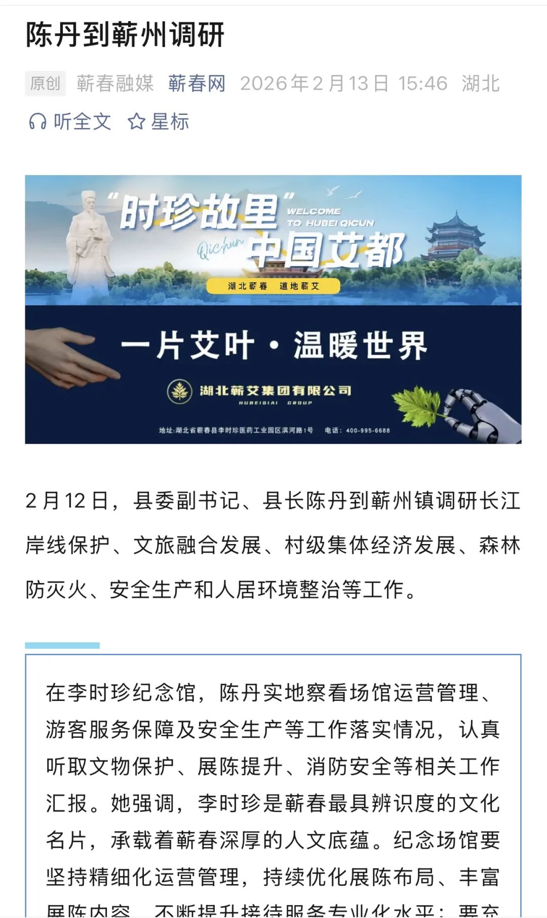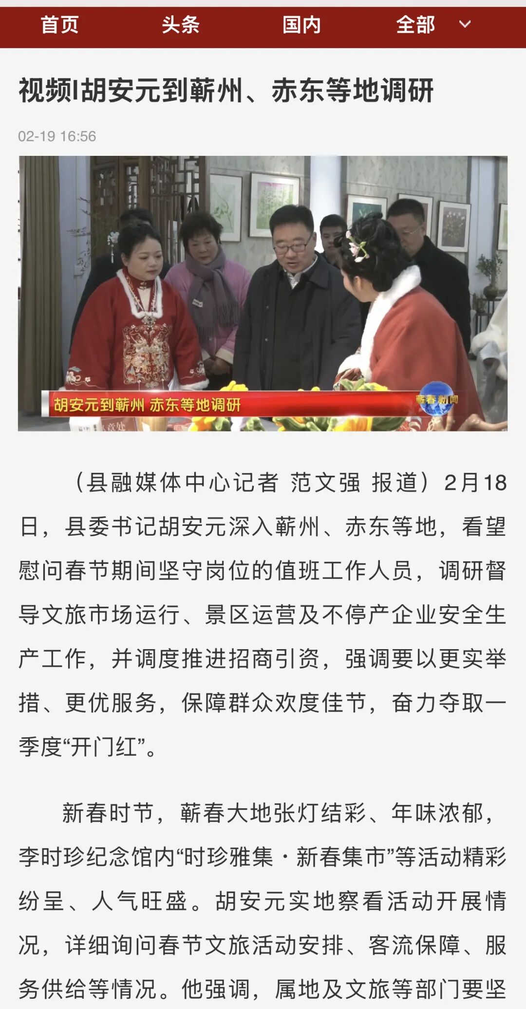 2月16日,蕲春发布报道李时珍纪念馆春节活动