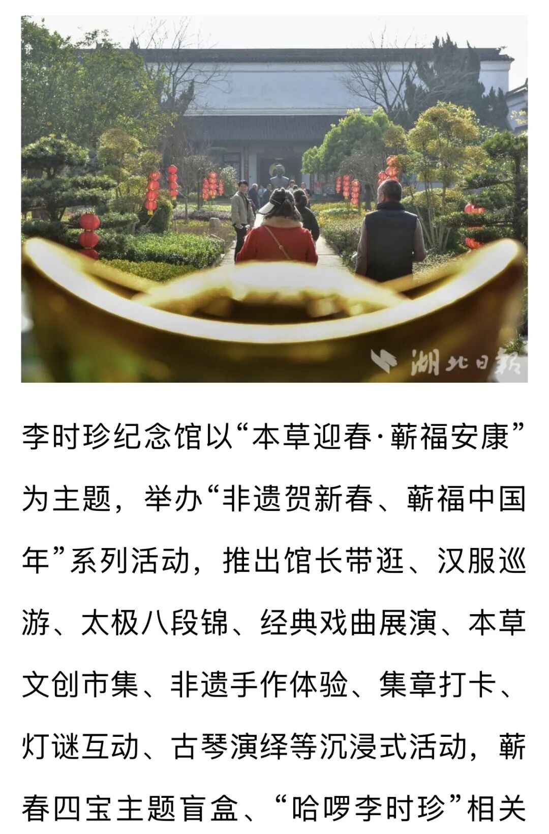 2月24日,湖北日报报道李时珍纪念馆春节活动