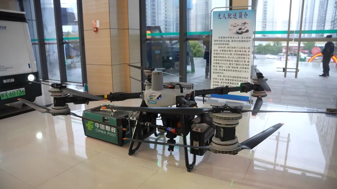物流科技展区内,物流无人机安静陈列,创新点不是无人机本身,而是无人机送快递、运山货,精准适配蕲春丘陵地形,起降误差不足10厘米,彻底解决山区“快递难进、山货难出”的堵点。试点以来已配送快递3000多件,转运农户山货5万多斤,让天堑变通途,让山里好物直通市场。