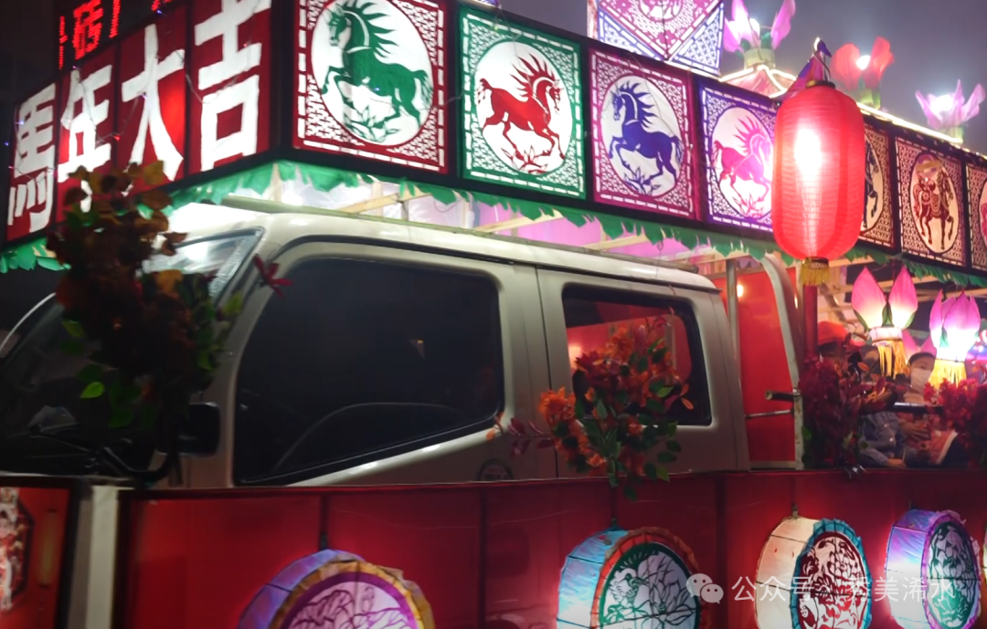 不远处,黄国庆家门口摆放的“国泰民安、风调雨顺”字形花灯配色精致,寓意“鱼跃龙门”的头灯,尾巴可以摆动的鲤鱼灯和其他十多盏传递马年祝福的花灯摆放整齐,整装待发,准备迎接洗马一年一度的元宵花灯巡游。