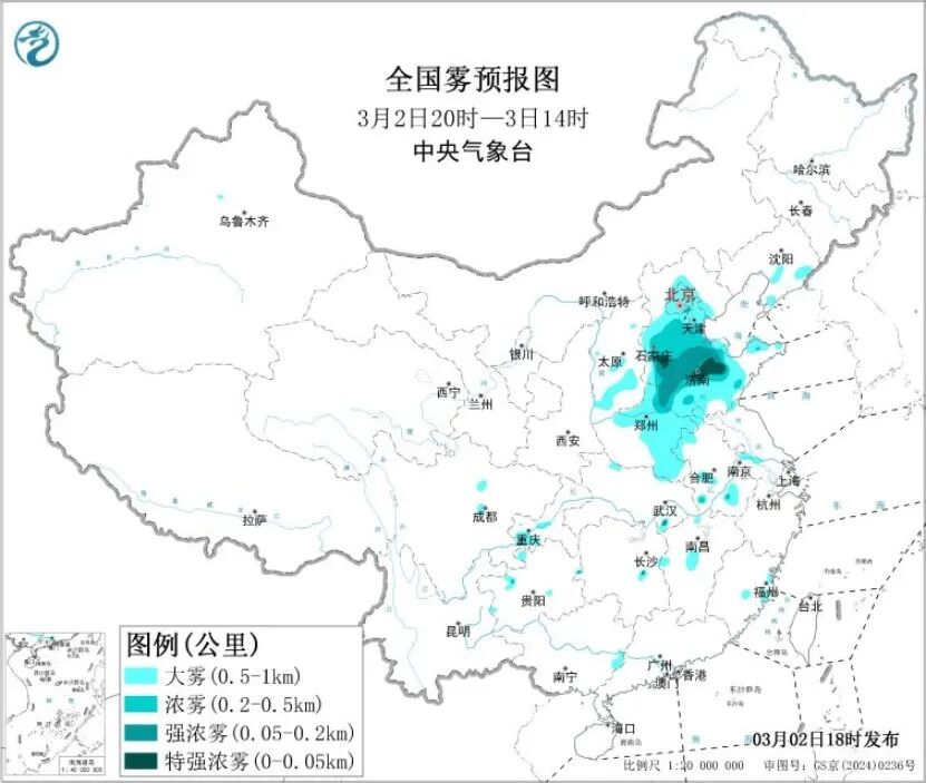 中央气象台2日18时发布大雾橙色预警,预计北京、天津、河北中南部、河南中东部、山东中西部等地的部分地区有大雾,其中,河北南部、河南北部、山东西北部等地的部分地区有能见度不足200米的强浓雾,局地有能见度不足50米的特强浓雾。