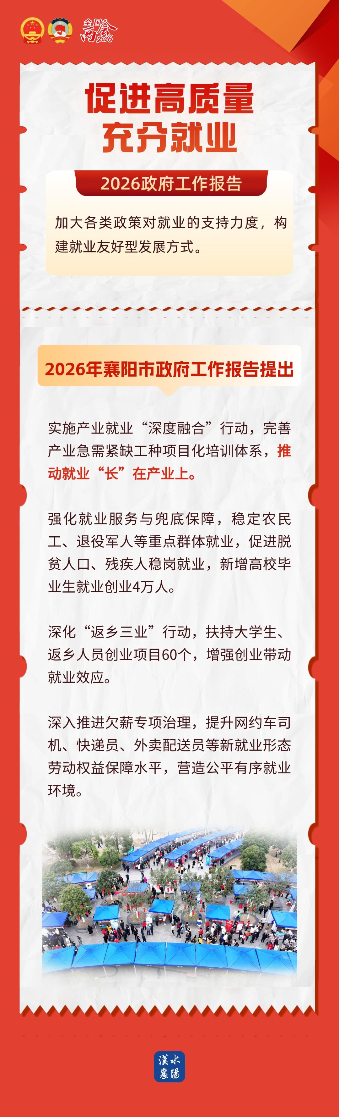 读政府工作报告,看襄阳2026 2026-03-07 15:10 0 3月5日上午 十四届全国人大四次会议在北京开幕 国务院总理李强作政府工作报告 明确2026年发展主要预期目标 提出2026年工作任务 对标部署,立足实际 2026襄阳怎么干,一起来看 ↓↓↓