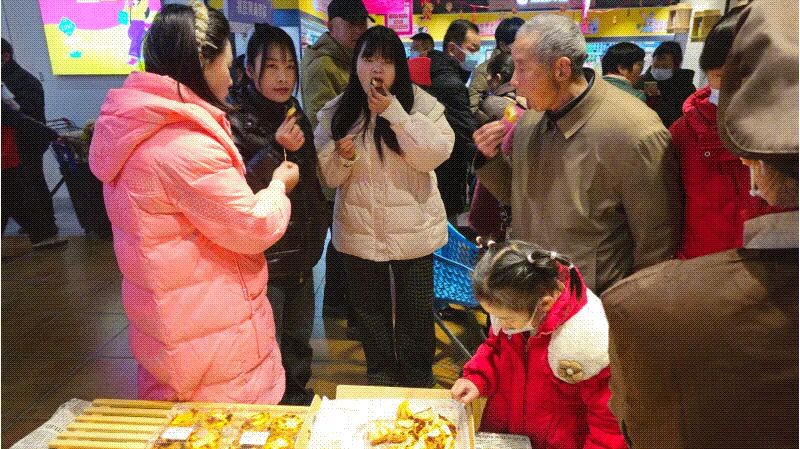 此外,超市还对商品品类进行了升级,重点提升了加工熟食板块的品质与种类。自制烘焙商品、轻食商品、三文鱼、寿司、沙拉等健康美食纷纷登场,满足了顾客对健康饮食的追求。面点商品也更加丰富多样,除了传统的包子、馒头,还增加了年轻人喜爱的米糕类商品。加工熟食更是重点升级,新增了烧烤系列与特色小吃,主打便捷高效的用餐体验,既能快速解决饱腹需求,也能满足日常解馋的小欲望,适配各类即时用餐场景。堂食区除了原有的小碗菜,还新增了羊肉串、关东煮、麻辣烫及现包现煮水饺馄饨等,品类丰富、新鲜热乎,10-20元就能让顾客吃饱吃好,价格十分亲民实惠。目前,加工餐饮就餐区可容纳近100人同时就餐,让顾客在购物之余能够轻松享用暖心餐食,提升用餐体验。