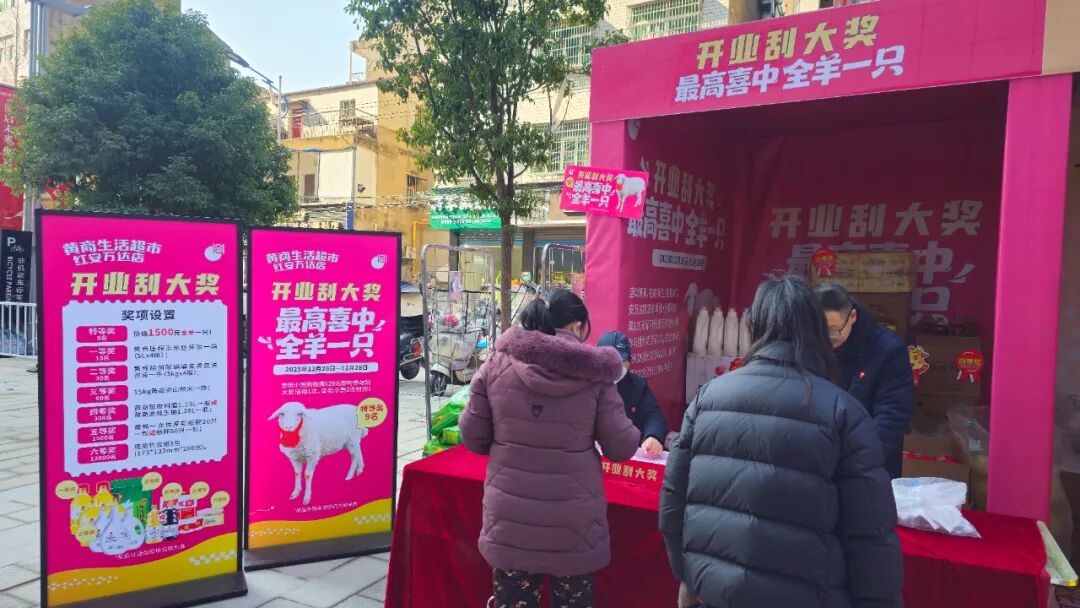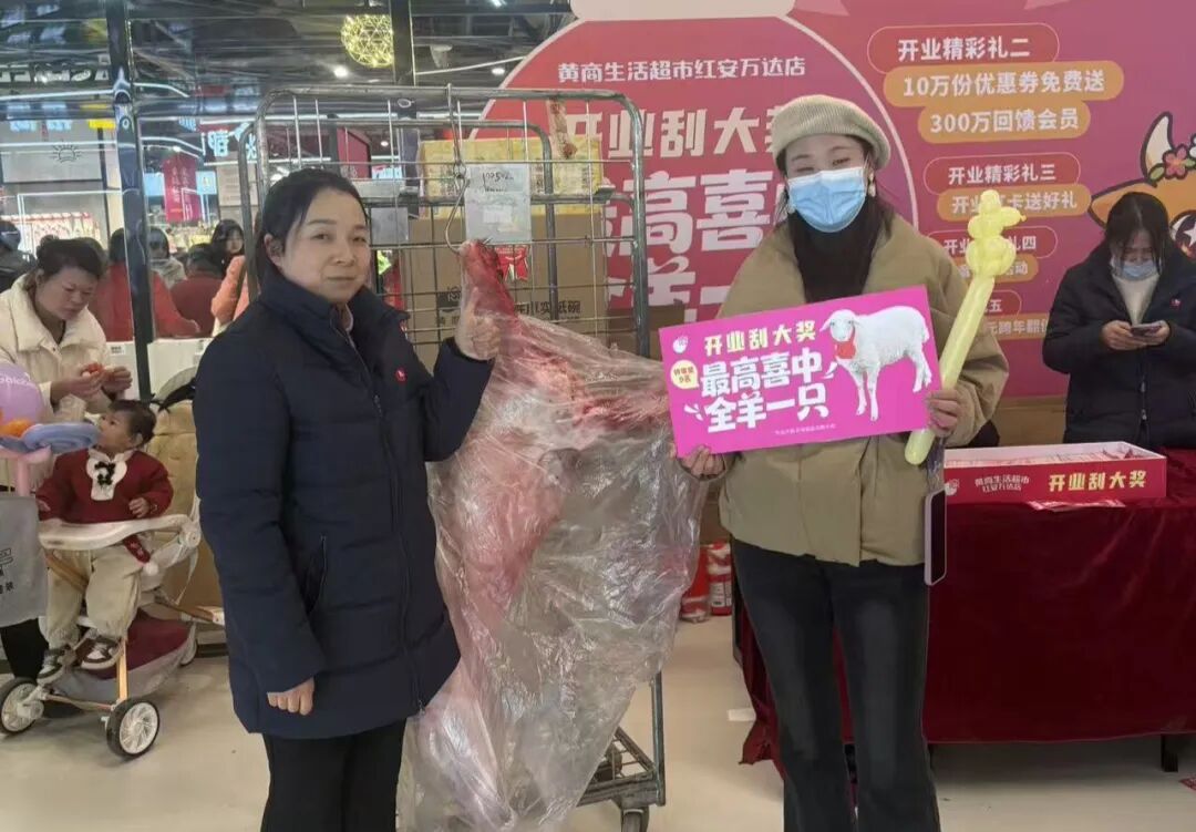 为了庆祝开业,黄商生活超市红安万达店推出了一系列丰富多彩的活动。活动期间,顾客单张小票购物满129元即可参与刮大奖活动1次,单张小票最多可参与2次。最高奖项为价值1500元的全羊一只,丰厚的大奖吸引了众多顾客踊跃参与。