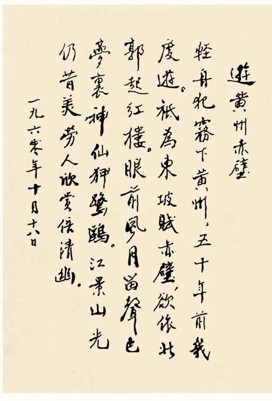 1960年10月18日,董必武写下这首诗。诗中不仅描绘了黄州赤壁的秀美风光,更对赤壁的历史脉络与文化渊源作了清晰阐述。诗的最后一句是:“劳人欣赏于清幽。”