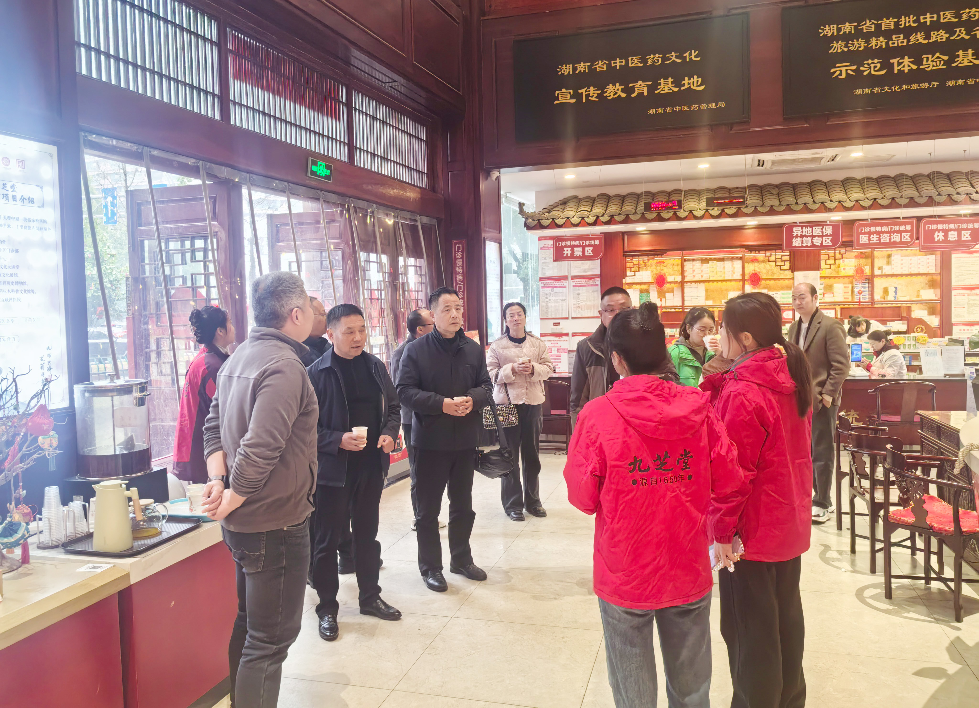 随后,英山县考察组成员一行实地探访多家参与便民服务举措的药品零售门店。在九芝堂连锁药店,宽敞明亮的购药环境、清晰醒目的适老化标识、精心设置的药师咨询台、免费提供的血压血糖检测设备、贴心的送药上门服务,以及门店执业药师为顾客提供的个性化用药指导等,都给考察组成员留下了深刻印象。