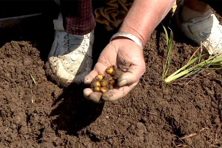 团陂镇李岗村党支部书记 何海涛:元胡用农家肥。化肥用多了,地就会板结。用农家肥之后,蓬松一些,对土壤也有一定的改善作用。种了稻谷收入高些,用的肥料也稍微少一些。