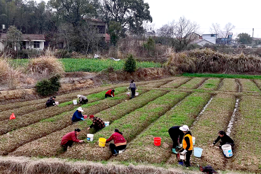 走进团陂镇李岗村的稻药轮作基地,田野里一片繁忙。这边,村民们正抢抓晴天,对冬季种植的元胡进行田间管理,施肥除草,查看药材长势。这片元胡药田其实是一片水稻田,当地这种药稻轮作的紧凑节奏,正是李岗村探索出的增收秘诀。