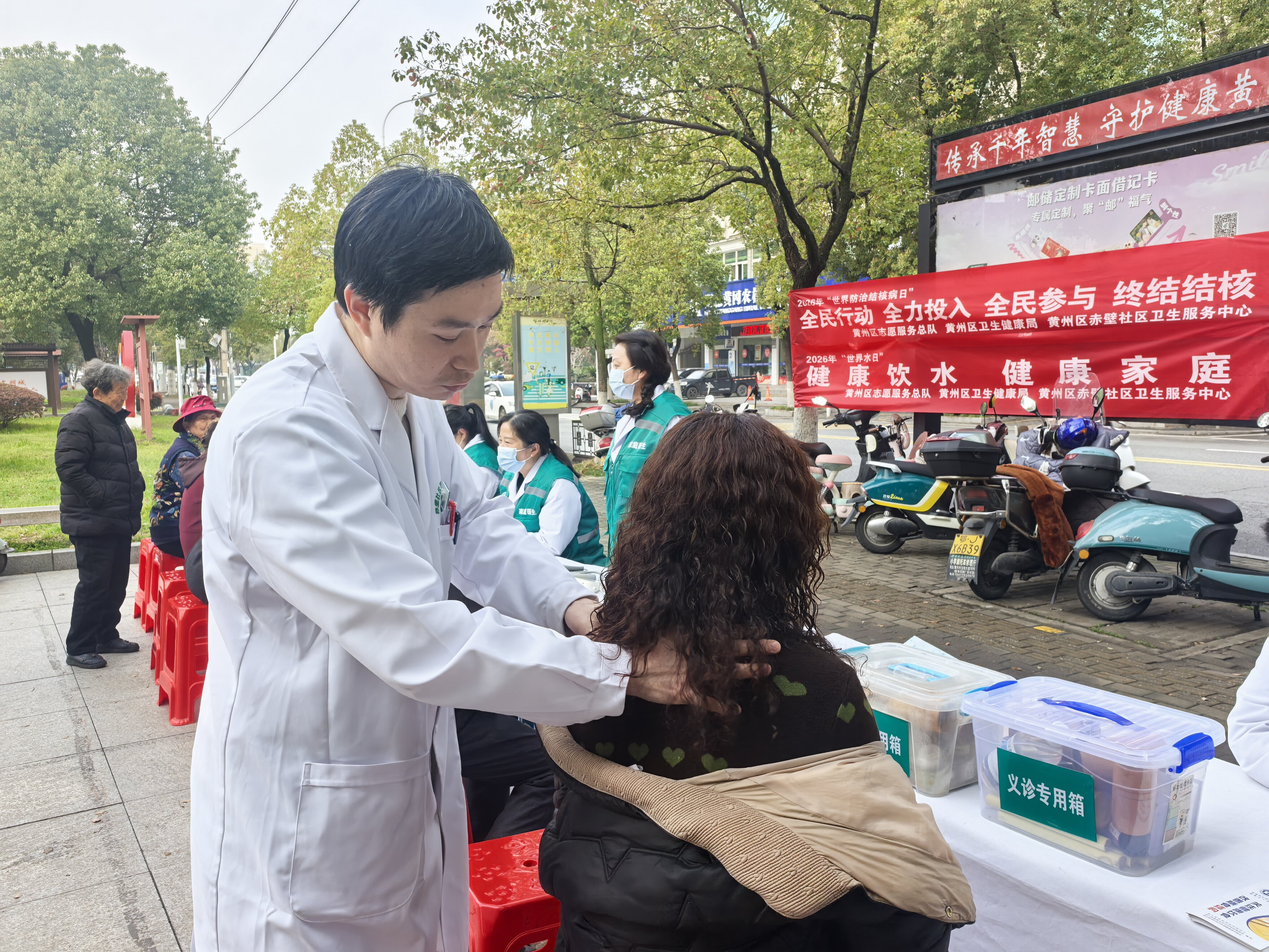 3月19日上午,青砖湖广场人头攒动。黄州区赤壁社区卫生服务中心以2026年“世界防治结核病日”与“世界水日”为契机,组织开展“全面行动 全力投入 全民参与 终结结核”“健康饮水、健康家庭”双主题大型义诊活动,通过“义诊+科普+讲座”立体化服务模式,将健康关怀送到居民家门口。