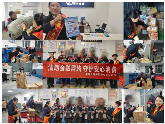 福建:泰康人寿福建分公司消保志愿者们化身“安全宣传员”,穿梭在货架之间,手持风险提示小贴纸,分工协作、有条不紊。他们一边仔细核对包裹摆放情况,一边将印有“警惕非法集资避免财产损失”“科学评估风险 合理配置资产”等内容的标签,逐一贴在快递盒显眼位置。选择在快递包裹上贴风险提示标签,就是要利用“最后一米”的投递场景,把风险提醒送到市民手中,让大家在取件的瞬间,就能接收到金融安全知识,就像在不经意间收获了一份贴心的小礼物。