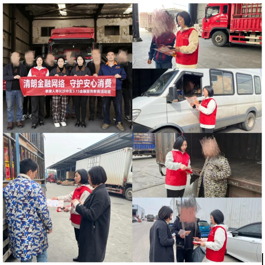 湖南:泰康人寿湖南分公司进长沙县物流园,活动现场,志愿者们通过发放宣传折页、以案说险、面对面讲解等形式,重点向货车司机普及防范冒充平台诈骗、虚假理财、运单洗钱、征信骗局等知识,提醒守护个人信息与合法保险权益。