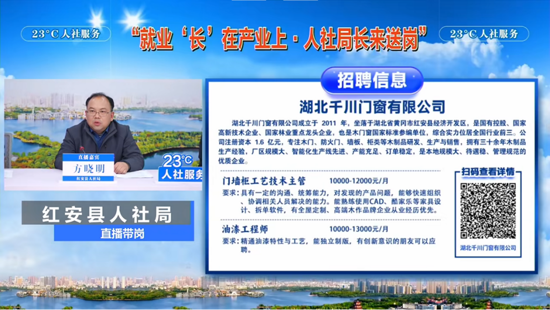 此次直播,方晓明局长重点带来湖北千川门窗有限公司200余个岗位,涵盖管理、技术、普工等类别,月薪普遍在6000元以上,部分技术岗位达13000元,企业提供五险一金、免费食宿、带薪年假等优厚待遇。针对网友关心的技能门槛问题,方晓明局长表示,企业看重实际技能,更看重学习态度,“经验丰富者学历可放宽,零基础也有师傅带教”。