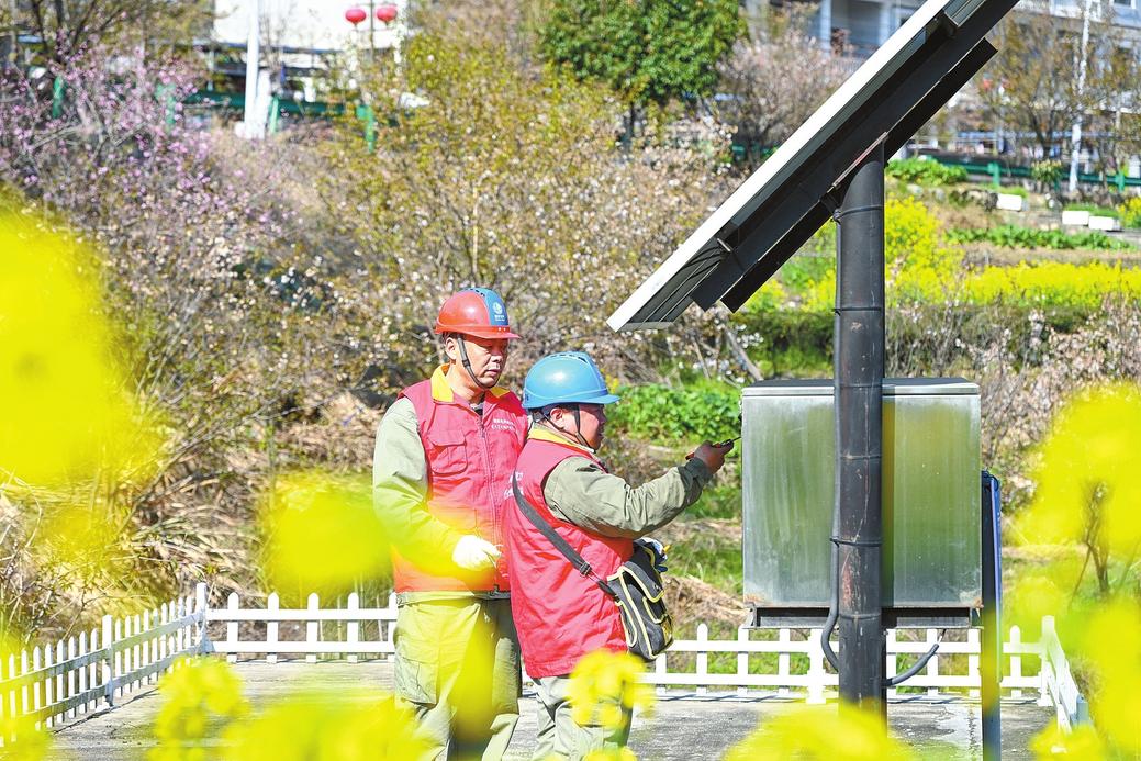 当前,正值春耕,国网英山电力公司党员志愿者服务队,深入田间地头,开展农业安全用电检查,以优质服务全力保障农业生产。3月14日,在英山县温泉镇梅岩村高标准农田,国网英山县供电公司党员志愿者服务队对田间智慧农业监测点用电设备进行运维检测。特约摄影师 王江 通讯员 姚文章 摄