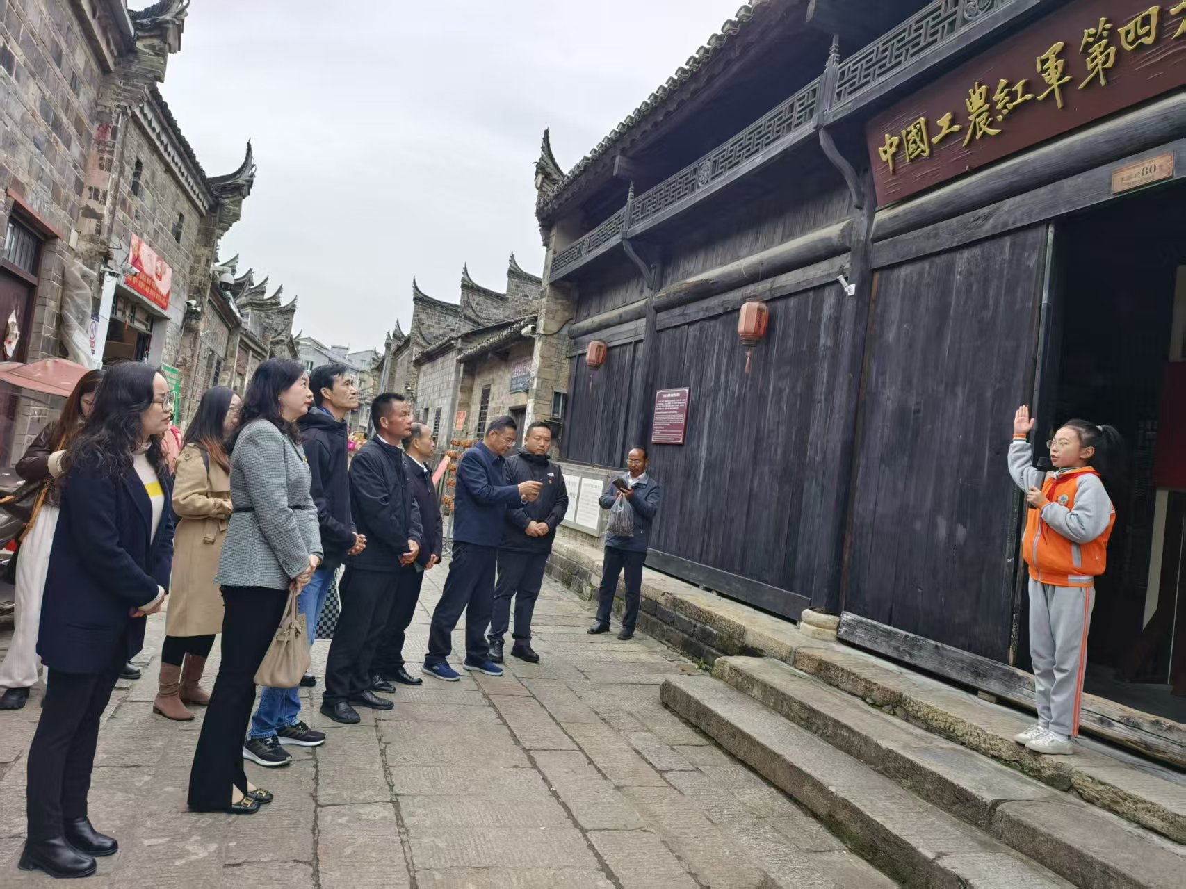 3月15日,红安县七里坪镇长胜街上青石板路上,红安县新时代好少年、列宁小学五年级学生方祎婷,正带着她的“红领巾”伙伴们,为往来的参观者义务讲解。孩子们神情专注,将90多年前的红色故事娓娓道来。