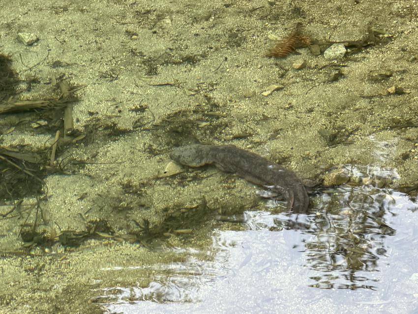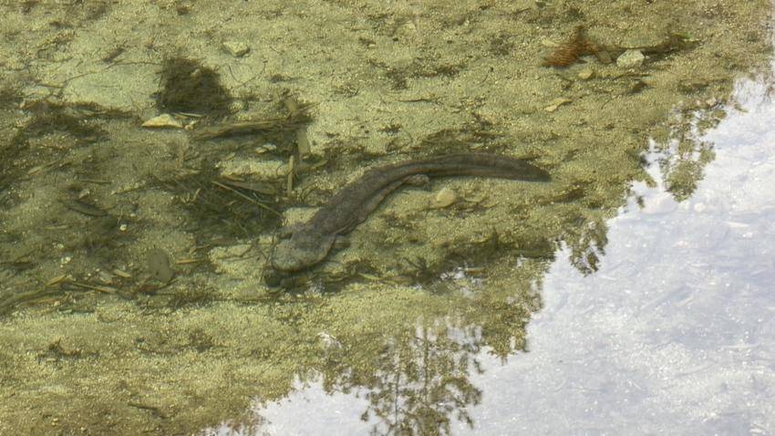 一秒、两秒、三秒……娃娃鱼在水中短暂停留,似乎在适应这久违的清冽。然后,它有力地摆动尾巴,向溪流深处游去,转眼间消失在石缝之间。