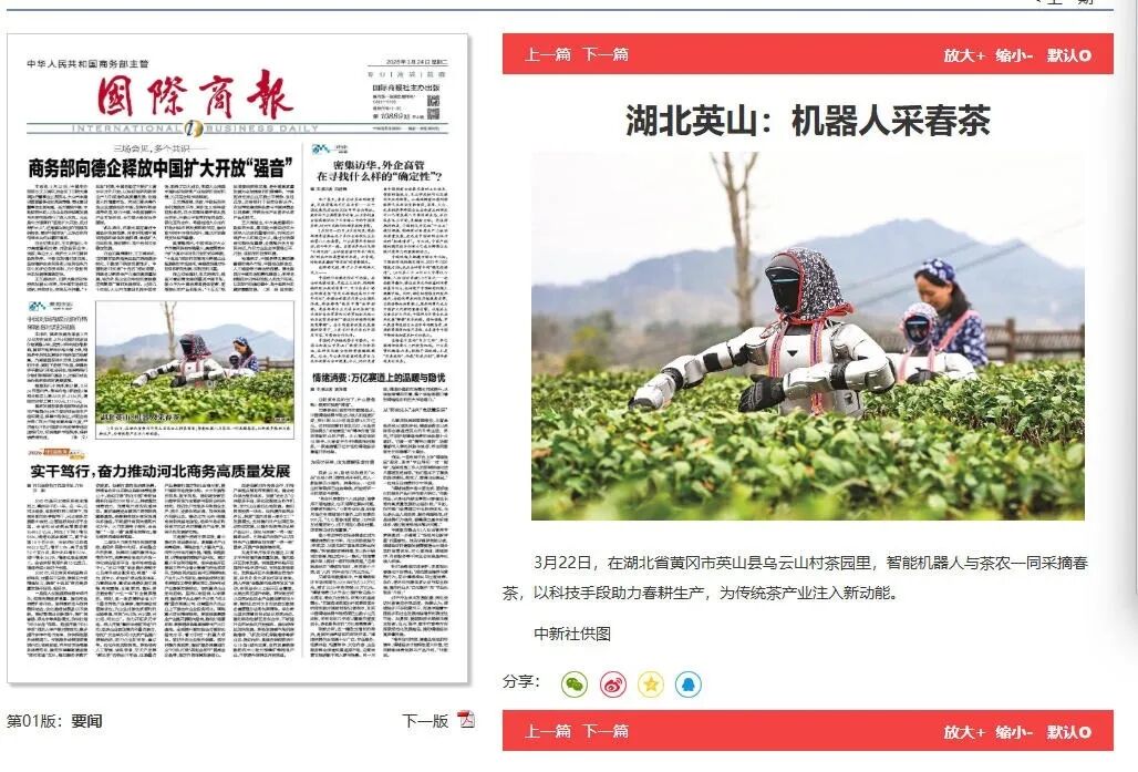 三月下旬(3月24日—27日),人民日报海外版、光明日报、经济日报、国际商报、中国旅游报、中国信息报六大中央媒体不约而同将目光投向湖北黄冈英山县乌云山村。云雾缭绕的茶园间,一场别开生面的“人机协作”春茶采摘,成为这个春天最亮眼的风景。