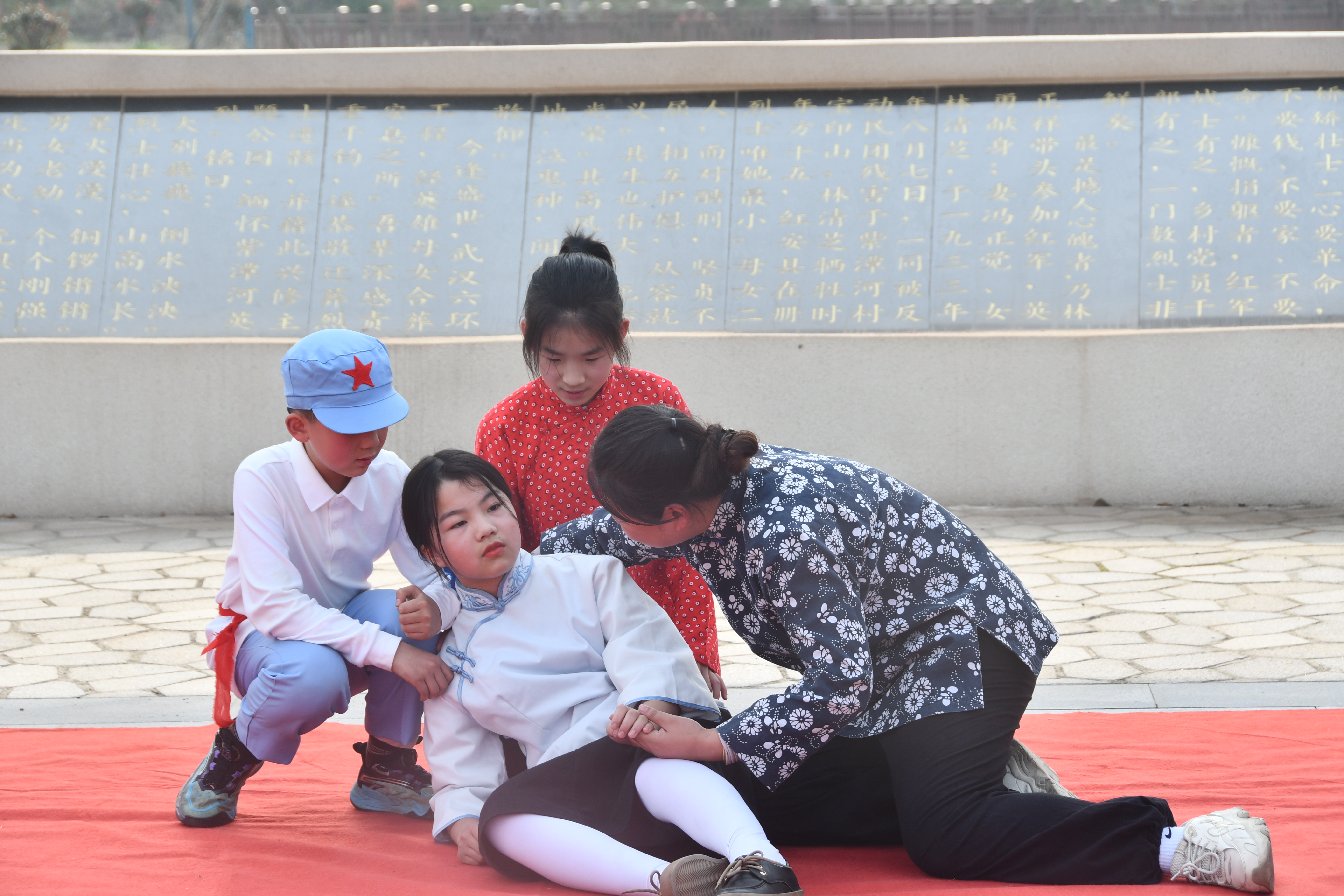 从剧本打磨、角色排练到现场演绎,师生们全身心投入。五(7)班学生祁诗蕊饰演烈士林清芝,课题组执笔人石娟老师饰演林清芝母亲冯正觉,课题组其他教师化身群众演员。在沉浸式演绎中,大家与革命英雄完成一次跨越时空的精神对话。