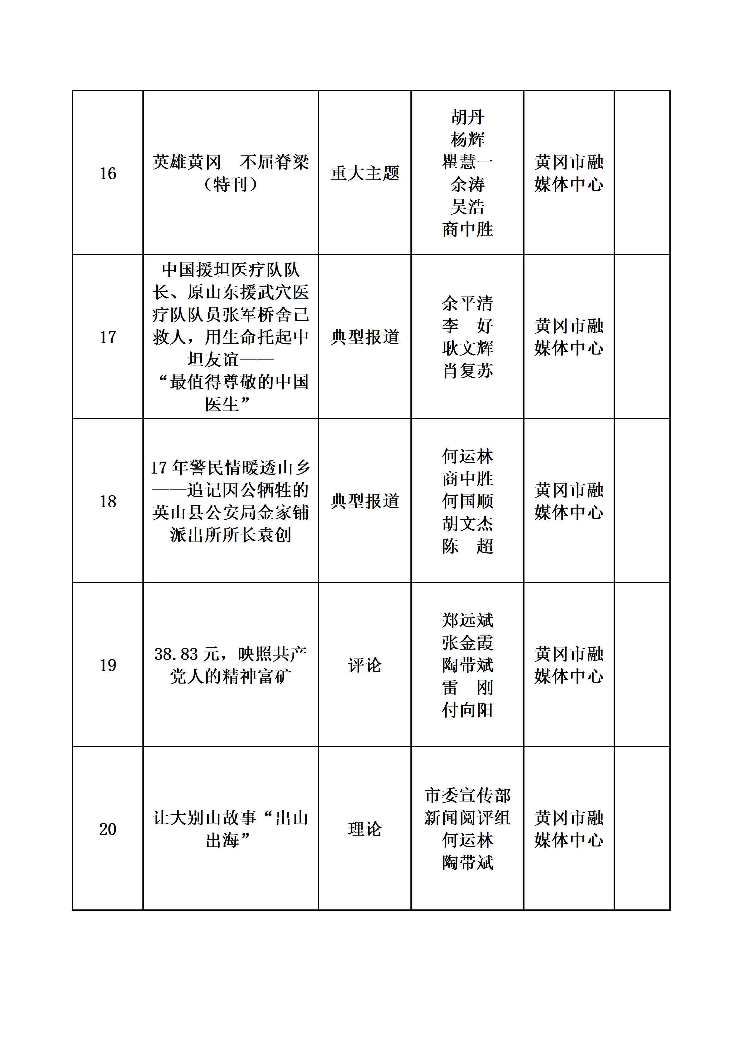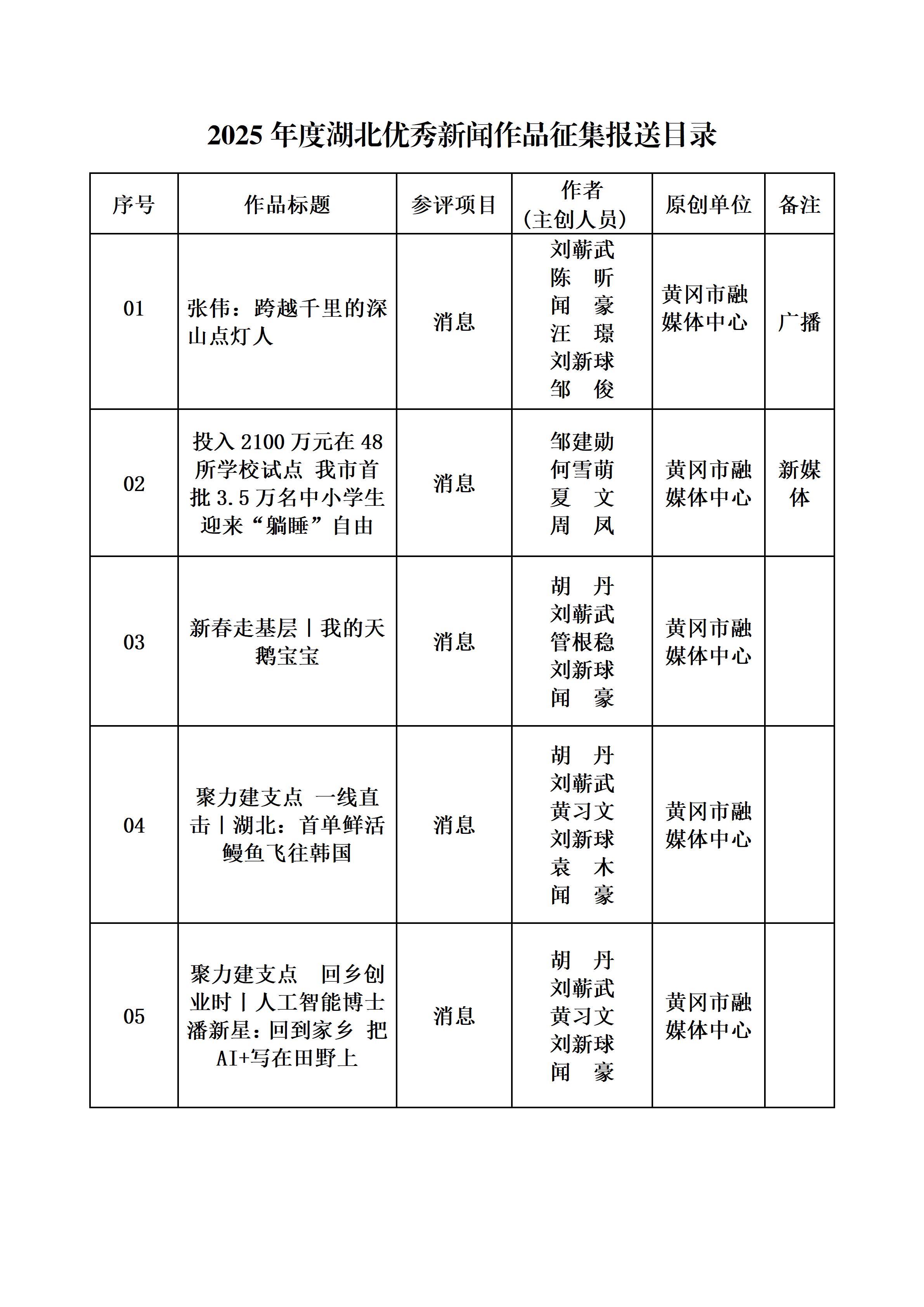 经黄冈市融媒体中心和黄冈市广播电视学会评选推荐,《张伟:跨越千里的深山点灯人》等41件作品拟申报参加2025年度湖北优秀新闻作品征集评选。现予以公示,公示期2026年4月1日至2026年4月7日。如有异议,请于4月7日前联系0713-8812264,或向湖北省黄冈市广播电视学会举报,举报邮箱:275006931@qq.com。