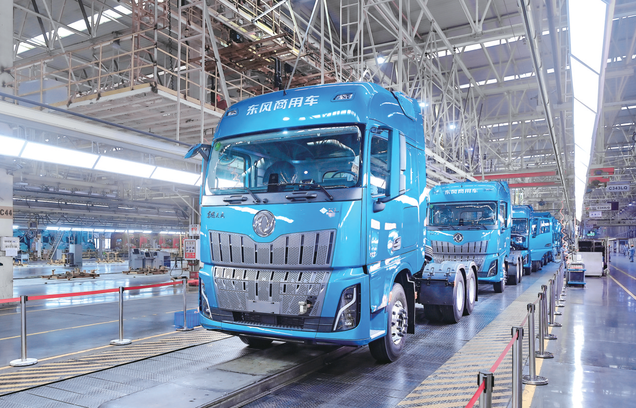 在D600智慧工厂,东风天龙KH批量下线。记者 张启国 通讯员 刘鸿飞 摄