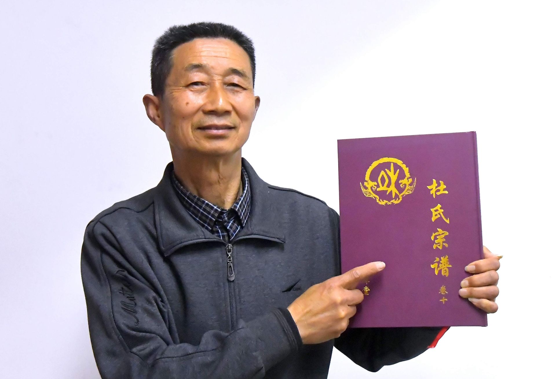 卢世嘉向记者介绍《杜氏宗谱》。记者刘斌 摄