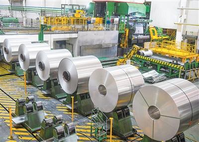 在河南省洛阳市新安县的洛阳万基铝加工有限公司车间,工人正生产一批出口海外的动力电池软包铝箔。张怡熙摄(人民视觉)