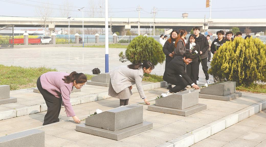 清明祭英烈 2026-04-07 09:53 0 连日来,我市社会各界积极开展清明祭英烈活动,深切缅怀革命先烈,传承红色基因,汲取奋进力量。图为4月1日,黄冈师范学院生物与农业资源学院师生在黄州区杨家湾烈士墓开展清明祭扫活动。 记者 余涛 通讯员 罗思梦 摄
