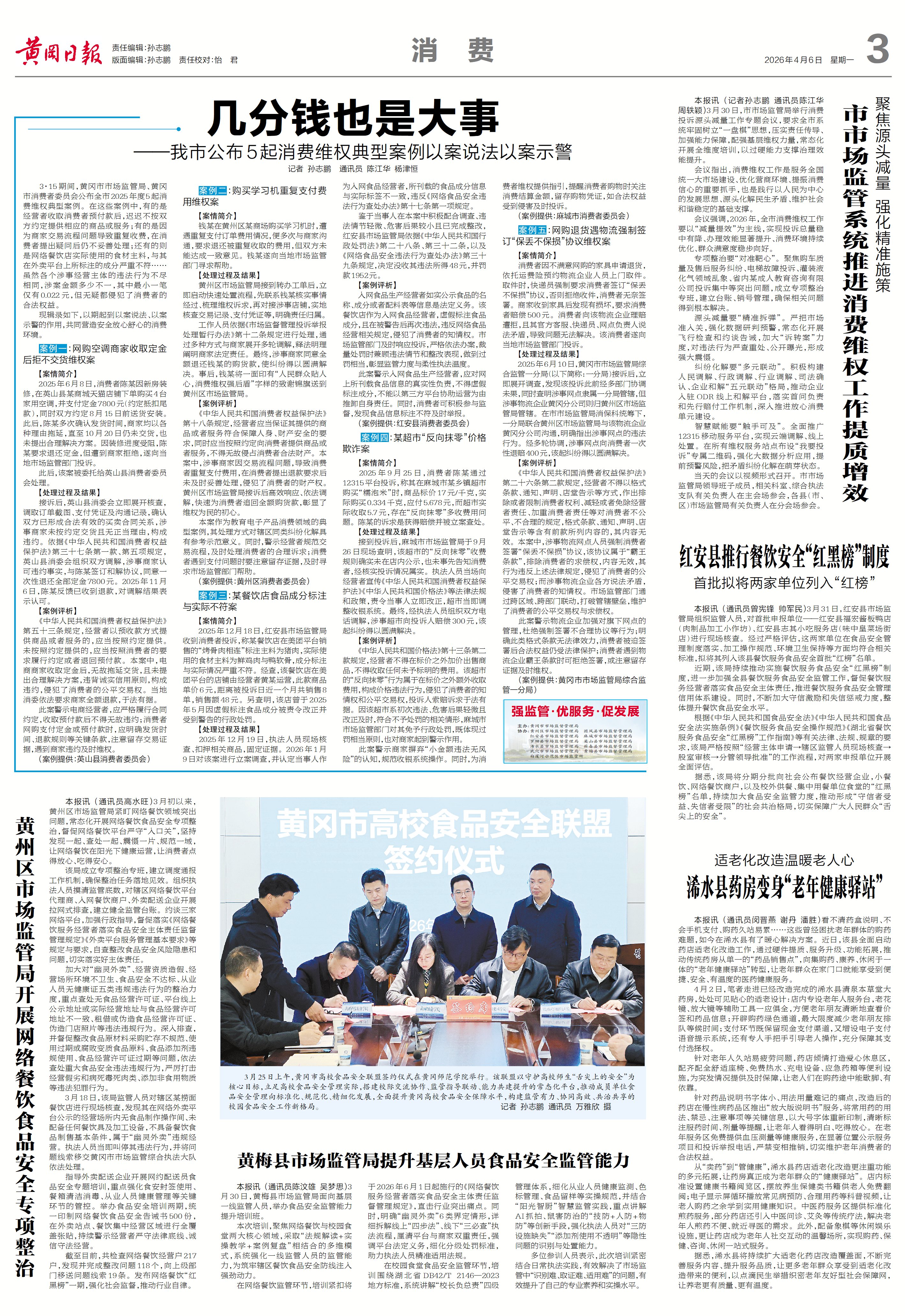 3·15期间,黄冈市市场监管局、黄冈市消费者委员会公布全市2025年度5起消费维权典型案例。在这些案例中,有的是经营者收取消费者预付款后,迟迟不按双方约定提供相应的商品或服务;有的是因为商家交易流程问题导致重复收费,在消费者提出疑问后仍不妥善处理;还有的则是网络餐饮店实际使用的食材主料,与其在外卖平台上所标注的成分严重不符……虽然各个涉事经营主体的违法行为不尽相同,涉案金额多少不一,其中最小一笔仅有0.022元,但无疑都侵犯了消费者的合法权益。 现辑录如下,以期起到以案说法、以案示警的作用,共同营造安全放心舒心的消费环境。