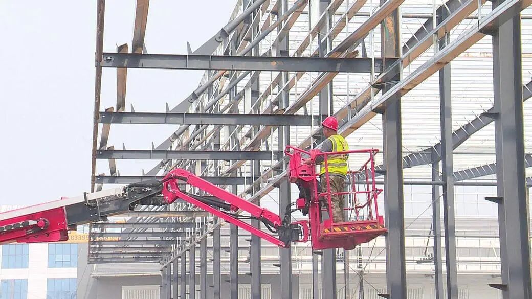 近日,在黑豹国际物流园二期项目建设现场,建筑工人们正忙着切割、焊接,全力推进主体钢架搭建,主体工程已现雏形。目前一期已建成高标准仓储库房2座共3.4万平方米,二期自年初开工以来,进展迅速,计划6月底竣工。