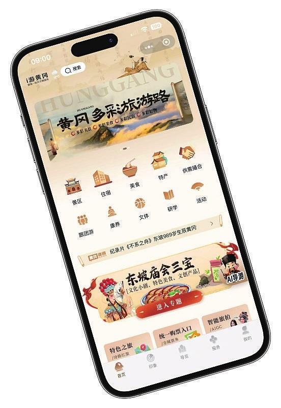 由黄冈市文化和旅游局与湖北联投鄂东投资有限公司联合打造的“i黄冈”文旅供应链平台,4月3日与读者见面。它打破资源壁垒,以“一库·一中台·一入口·全推广”的数字化供应链体系,将散落在黄冈山水间的景区、民宿、康养点位、特色山货等万千美好,尽数汇聚于指尖。