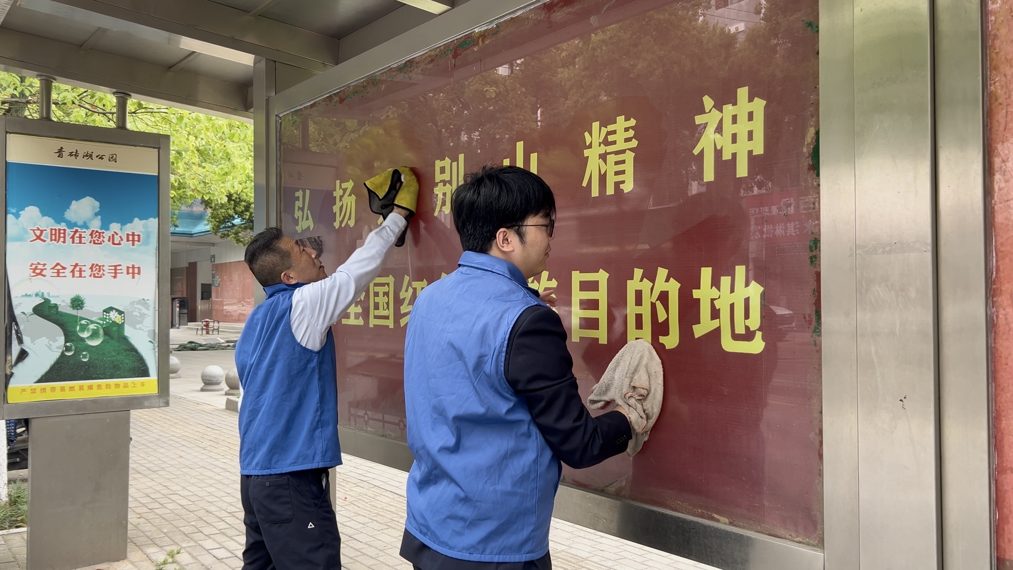活动中,志愿者向坚守一线的环卫工人送上问候与健康贴士,主动拿起扫帚、撮箕,协助清扫路面、清洁公交站台与公共交通工具,用劳动致敬城市美容师,以实干彰显企业社会责任。