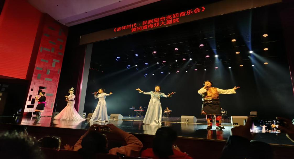 当草原的辽阔遇上长江的灵秀,当多民族的旋律交汇于黄梅戏之乡,一场别开生面的文化盛宴点亮黄冈夜空。4月14日晚,由一级演员、鄂温克族著名歌唱家乌日娜领衔的《吉祥时代·民族融合巡回音乐会》在黄冈黄梅戏大剧院温情上演。