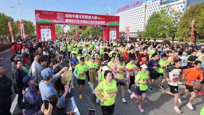 4月12日,2026绿跑中国全民健康大赛全国首站在红安县圆满落幕。来自全国各地的3000名跑者齐聚“中国将军第一县”,以奔跑致敬革命先辈,让红色文化与全民健身同频共振。