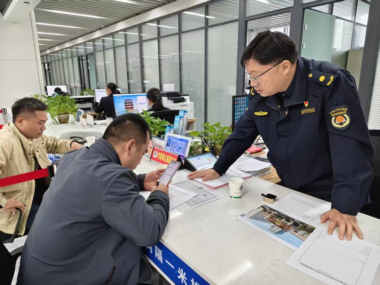 针对大型电子屏、裸眼3D等新型户外设施审批难点,陈俊峰同步调研系统流转、现场勘验等全流程,与窗口人员共商优化举措,听取企业意见,现场协调解决堵点。
