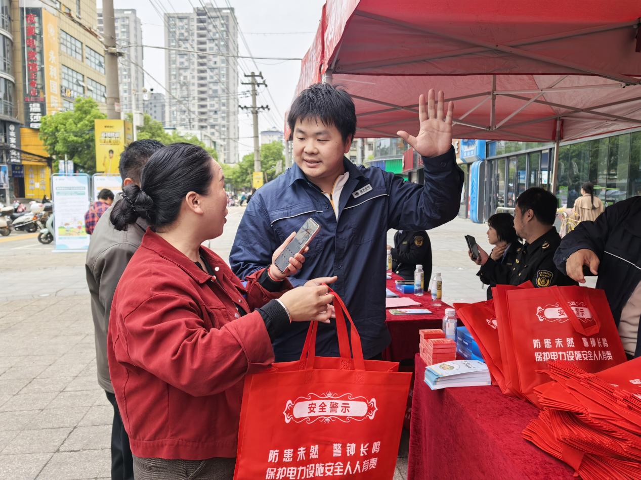 活动现场设置咨询展台,工作人员围绕《电力设施保护条例》等法规,分三点开展精准普法:一是聚焦电力设施安全,明确保护区范围、禁止破坏行为及法律责任,结合线路外破典型案例讲解危害;二是重点普及钓鱼防触电知识,警示高压线下垂钓的致命风险,演示渔线遇电的危险后果;三是发放纸袋、纸巾、扑克牌等实用物资,把安全知识融入日常用品。通过“面对面讲解+一对一答疑+趣味科普”的形式,让群众在互动中掌握核心要点,累计发放宣传物资300余份,解答安全用电疑问80余人次。