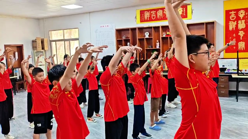 同时,洪寅星积极探索“非遗进校园”模式,在龙宗太极拳的基础上,结合儿童体格特点创立“太极健康操”,走进小学校园,增强学龄期儿童身体素质。