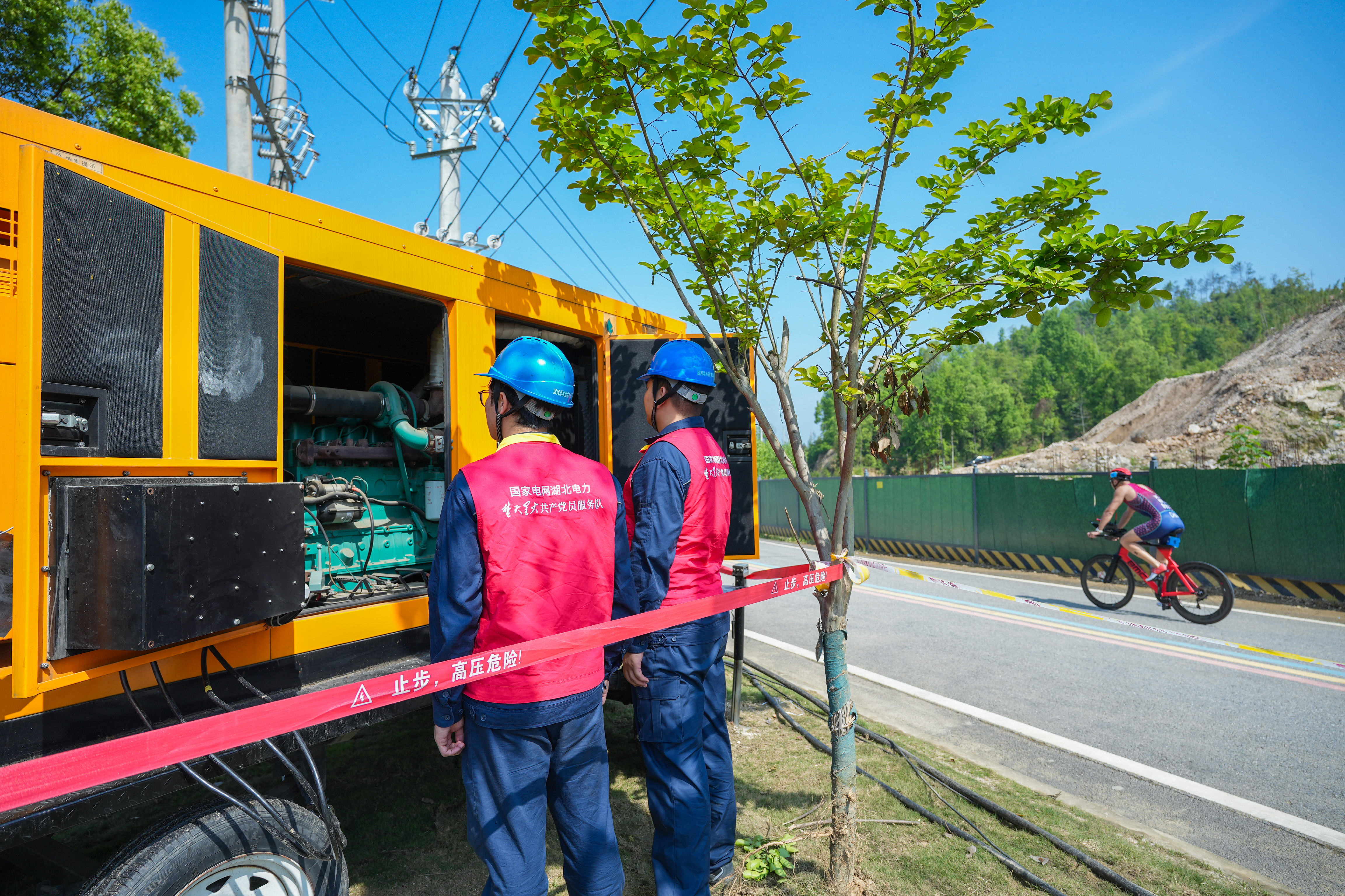 4月19日,2026年“月湖澜院杯”铁人中国T51.5浠水公开赛暨中国·浠水第三届乡村铁人三项公开赛在绿杨乡丁山村鸣枪开赛,来自全国各地的520名选手齐聚一堂、逐梦竞速。为确保赛事期间供电安全稳定、万无一失,国网浠水供电公司提前谋划部署、精准施策发力,圆满完成赛事保电工作,以坚实可靠的电力保障为赛事保驾护航。