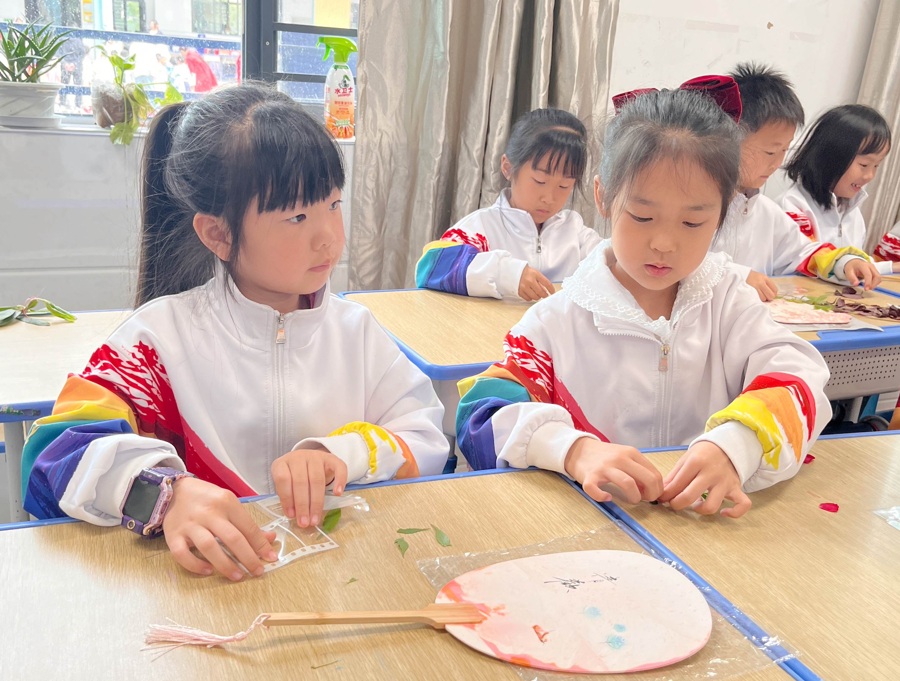 在东坡文化体验区,仿佛穿越至宋代文人雅集现场。长桌上整齐摆放着素面扇坯、天然大漆与调色盆,墨香与漆香交融,孩子们端坐桌前,调色、勾勒、晕染,一柄柄朴素的扇坯,在稚嫩小手的创作下,勾勒出独属于自己的纹样,尽显东坡文化的雅致韵味。