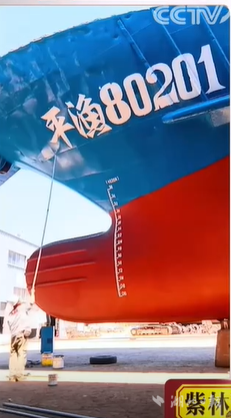 注意,这不是平地写字,而是悬在高空。没有脚手架,没有定位模板,没有校准工具。船体本身就有倾斜,海风还忽大忽小。就是在这样复杂多变的环境里,洪本伟稳稳操控着7米长竿,一笔一划写下巨型大字。
